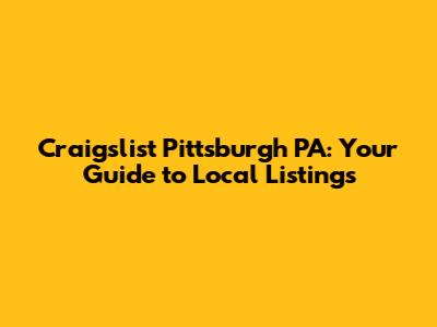 Craigslist Pittsburgh PA: Your Guide To Local Listings