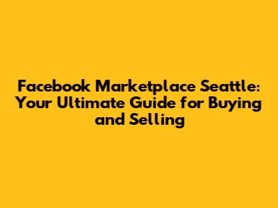 Facebook Marketplace Seattle: Your Ultimate Guide for Buying and Selling