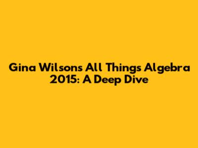Alright, guys, let's really dig into what makes All Things Algebra by Gina Wilson 2015 such a powerhouse in the educational landscape. Back in 2015, when these particular resources really started gaining traction, they weren't just another set of math materials; they were a revolution for many classrooms. At its core, All Things Algebra