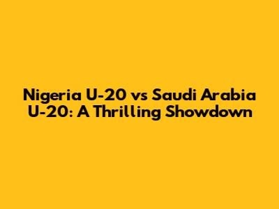 Nigeria U-20 Vs Saudi Arabia U-20: A Thrilling Showdown