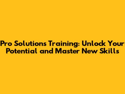 Pro Solutions Training: Unlock Your Potential and Master New Skills