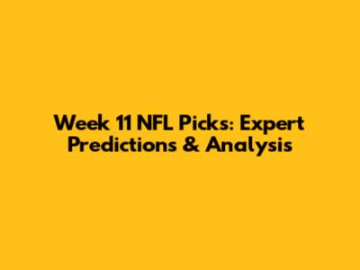 Week 11 NFL Picks: Expert Predictions & Analysis